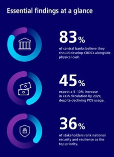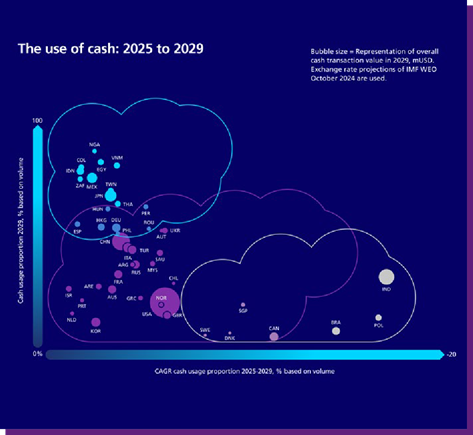 According to our white paper, 45% of central banks anticipate a 5-10% increase in cash circulation by 2029, despite decreasing Point-of-Sale usage. The cash paradox is projected to expand as more countries show high circulation but low usage. While digital payments will grow, cash will remain relevant worldwide, supported by strong infrastructure and its role in trust, resilience, and financial inclusion. These forecasts exclude potential geopolitical or economic shocks, which could significantly shift future trends.